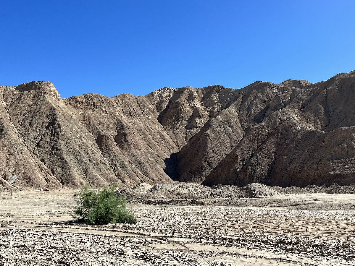 Sourcing Clay in Thermal was a day-long field trip to West Coast Sand & Gravel in Thermal, California to scope out clay for upcoming adobe projects in the Pioneertown/Joshua Tree area. The mountains you are seeing in the pictures below are made of almost pure clay. The extracted material is hard as a rock and super cohesive when mixed with water. A key step to working with this type of (montmorillonite) clay is to screen it down to at least a 1/4" particle size (even smaller is better) before blending it with water and aggregate. After collecting some field samples we ran the clay through a barrel sieve (imported from Germany) that attaches to the front of a concrete mixer and breaks the clay down to a workable size. Initial soil tests are pointing towards a mix ratio of 1 part clay to 8 parts sand for adobe block and plaster mixes. This type of clay is also perfect for making light straw mixes.